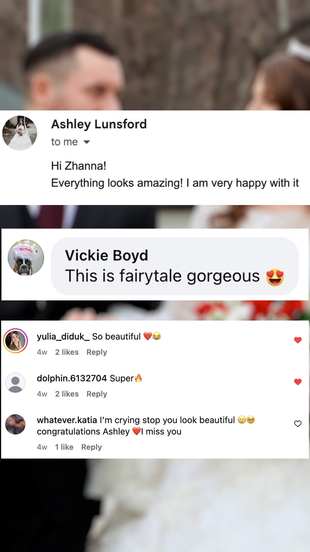 Zhanna was absolutely incredible to work with, and we truly cherish our wedding videos. She did a phenomenal job capturing the day; we are so happy to have our vows, our first dance, and everything about the day recorded. Zhanna was super easy to work with and very communicative.