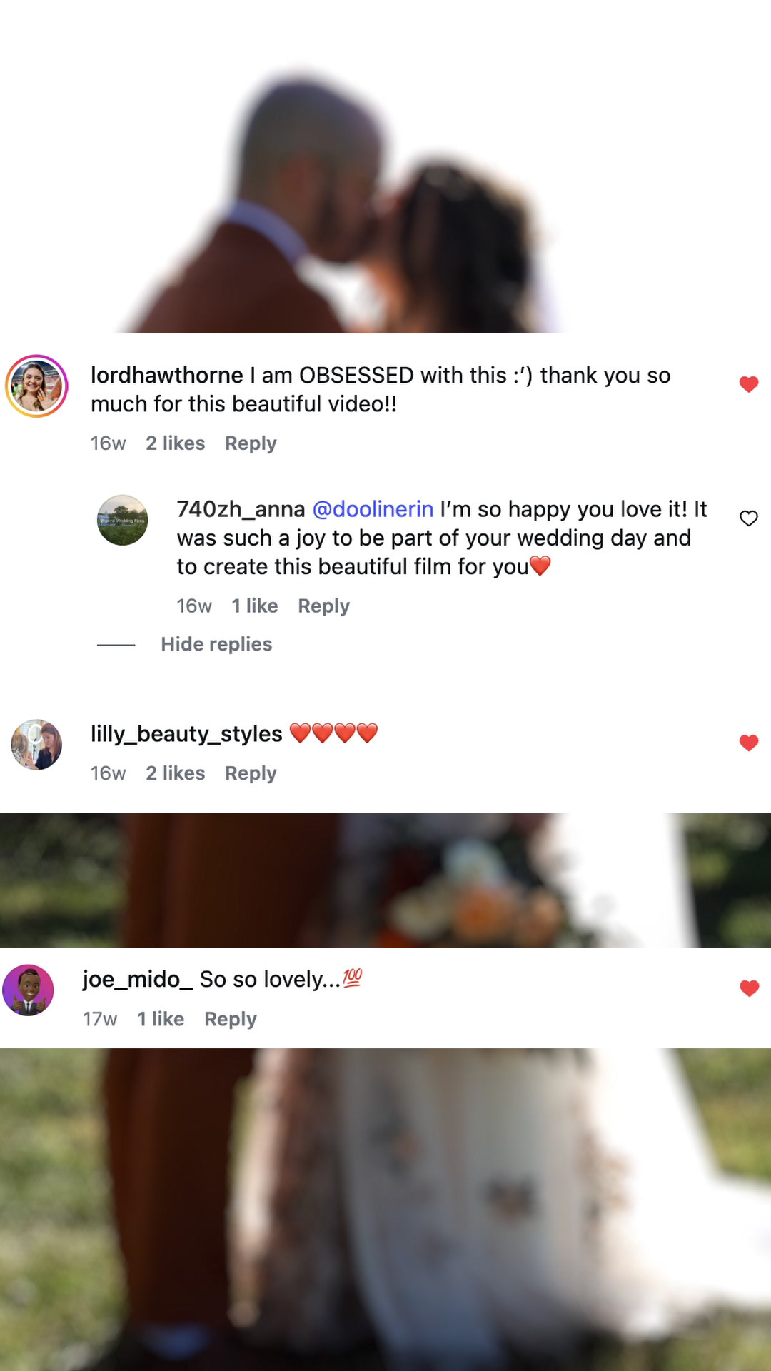 She did an amazing job! Her shots, the effort, the quality, and the timeliness in which she did everything was 10/10 worth it! Would not have had any other videographer besides her! Very thankful, she put in a lot of work, and it clearly showed. If you are considering, consider no more! Zhanna films the way to go!